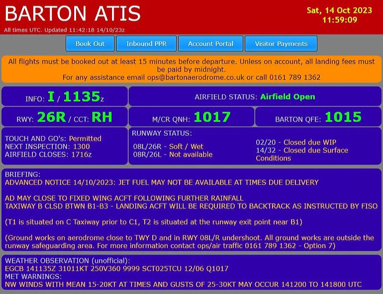 I've developed a customisable web based, mobile friendly, 'Aerodrome Information Screen' or 'ATIS'.This can be used to provide a display of the current Aerodrome Information, status, weather and any custom elements. A version of this real-time data can then be provided for pilots, with integration for online payments (using systems such as Red Atlas), and PPR or Booking Out forms.For an example of a live system, visit: